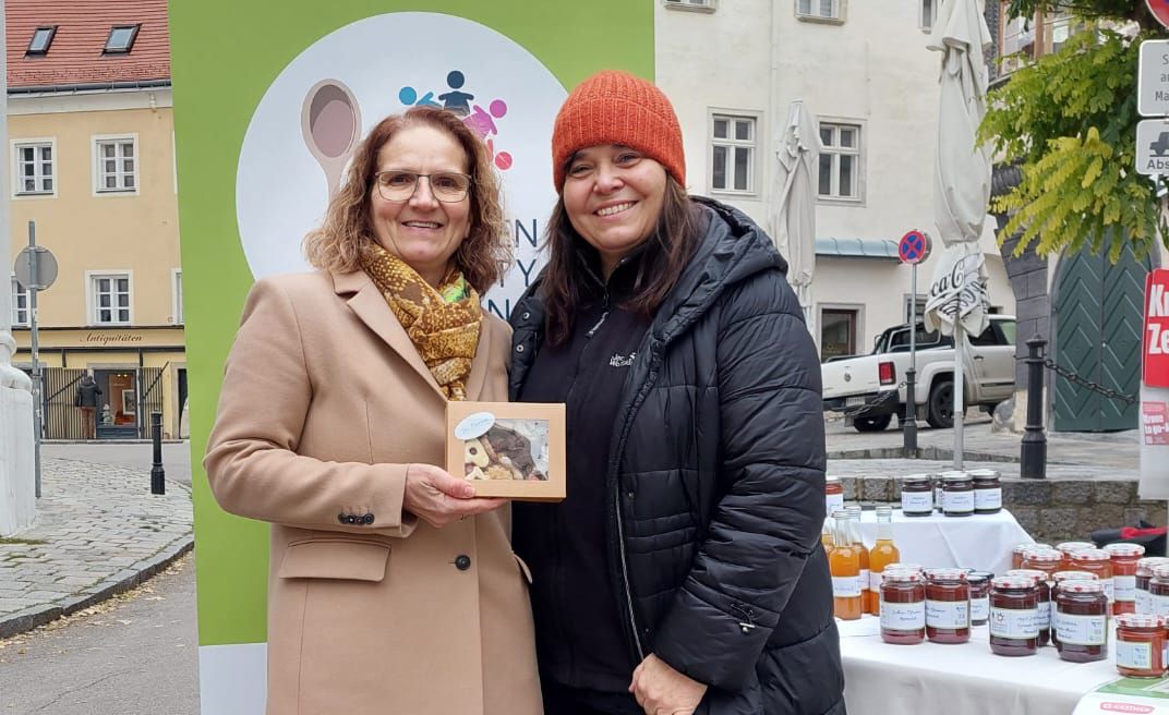 Nicht mehr verkaufte Lebensmittel werden wöchentlich von der Firma Kastner abgeholt, gemeinsam mit Schülerinnen sortiert und weiterverarbeitet. In Kochaktionen entstehen daraus süße und pikante Gerichte. Am 18.11.2023 wurden die Produkte beim Genussmarkt am Kremser Pfarrplatz verkauft. Direktorin Marianne Stromberger, Meriam Mörwald und Claudia Hiermann erzielten mit Unterstützung zweier Volksschülerinnen 900€.
