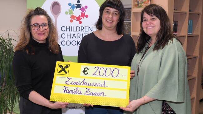 Beim Projekt Children Charity Cooking verarbeiten Kinder übrig gebliebene Lebensmittel der Firma Kastner in der Küche der HLM Krems zu gesunden Speisen. Dabei lernen sie, dass es mehr gibt als Fast Food – und dass nachhaltiges Kochen Freude macht. Mit dem Verkauf der eingekochten Köstlichkeiten konnte nun die erste Spende von 2.000 Euro an eine Familie in Droß übergeben werden.